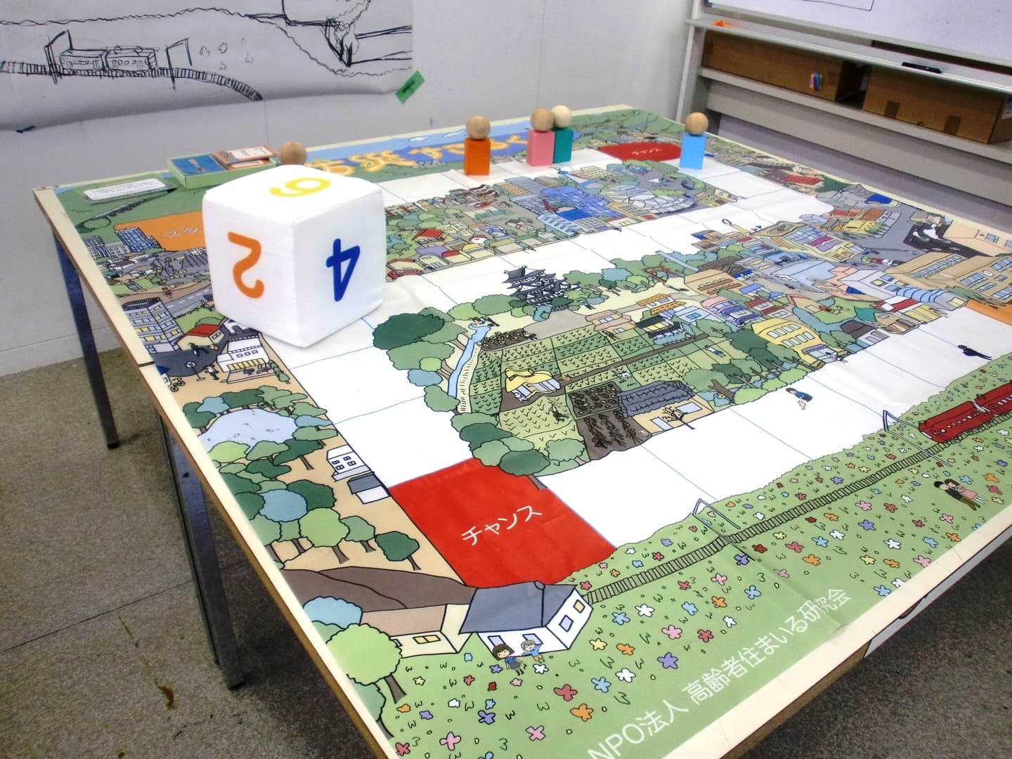 福祉施設における、「防災力向上」「地域連携」の重要性を学ぶ「人生ゲーム風?」のボードゲーム。