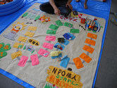 布製の防災グッズなどをつり上げるゲーム(子供大人気!)